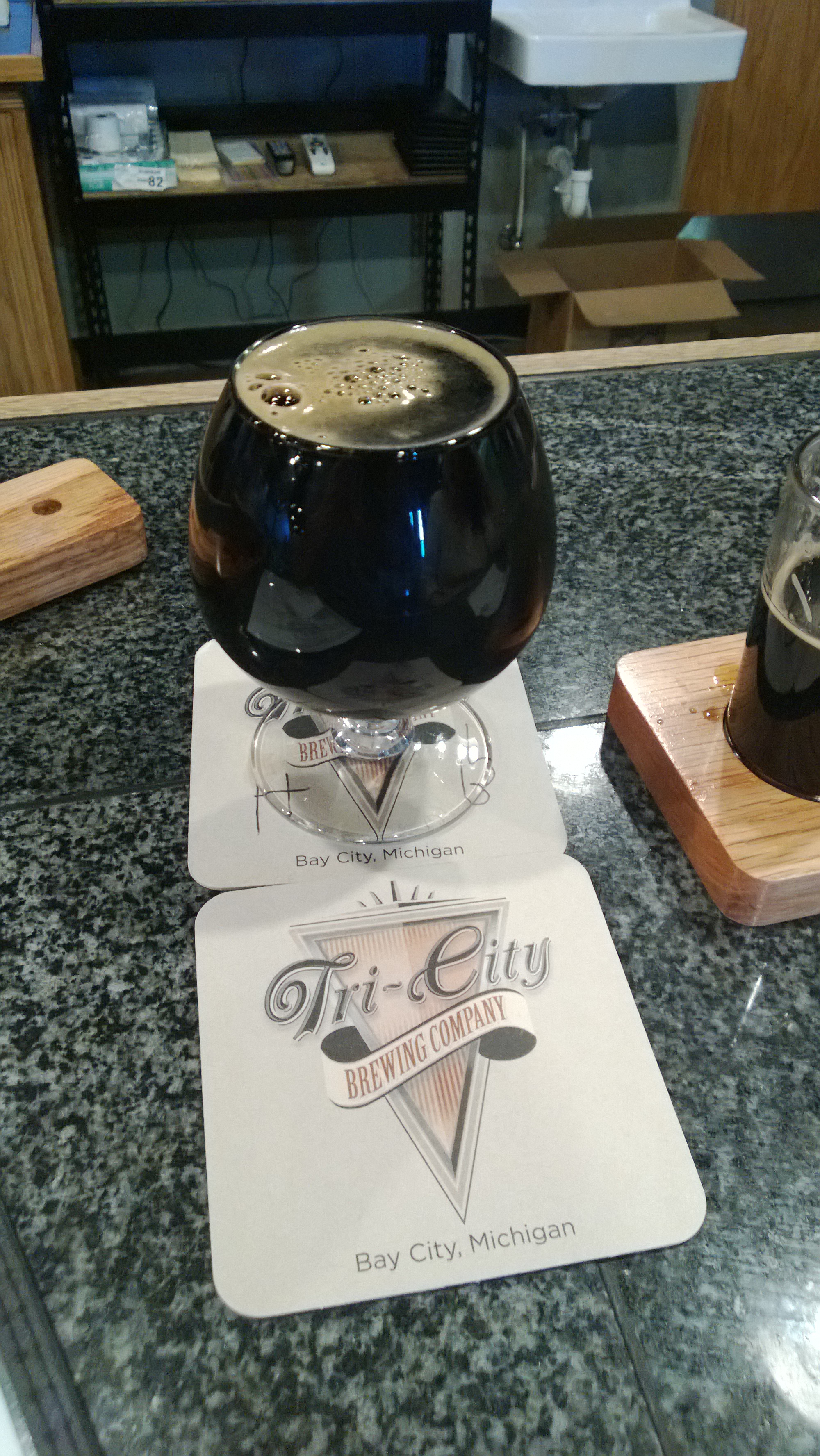 I am one of those people who tries to do the things that I say I will do. On the larger scale, I announced during some high school class or another that I would be a lawyer, live in Ann Arbor and never have kids. Note that I got my law license in 1997 and practiced for 7 years, co-own a home in Kerrytown and there are no little squirts running around our domicile. On the smaller scale, I have long been announcing to the world that I would visit Tri-City Brewing in Bay City. They are one of my first stops at every beer fest, I have enjoyed every single beer I’ve ever had and I even know one of the brewers! It took us a little while, but Boyfriend Ken and I finally made it up there last Friday!